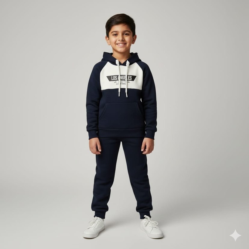 Lacivert erkek çocuk eşofman takımı, baskılı 'LOSNGEES' yazılı, yumuşak kumaştan, regular fit ve kapüşonlu tasarıma sahip. ️5-6 yaştan 13-14 yaşa kadar mevcut. Lacivert ve antrasit iki renk seçeneği vardır. İstediğiniz beden için ilan açtırınız.