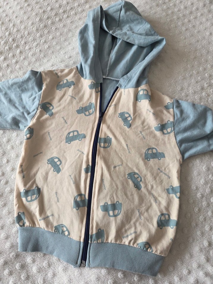 4 yaş fakat 2.5 3 olu3 kalıbı kucuk Kapüşonlu ve fermuarlı, yumuşak kumaştan erkek çocuk sweatshirt. Uzun kollu, bol kesim ve sokak tarzı, araba desenli model. Gri-mavi kollu ve kapüşonlu, krem gövde.