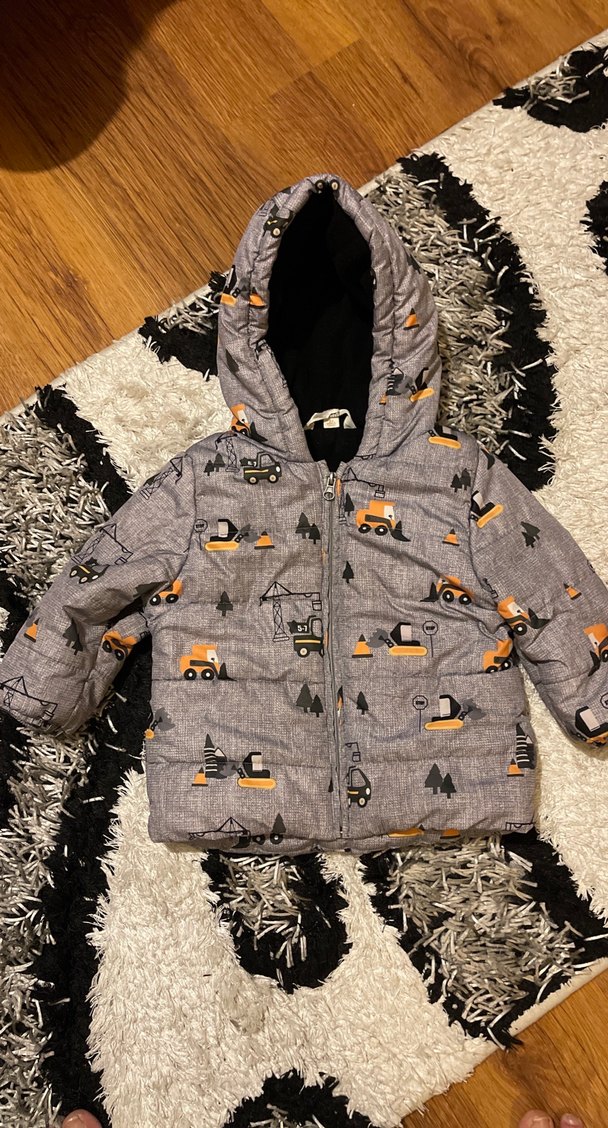 Kapüşonlu Erkek Çocuk Gri Baskılı Mont