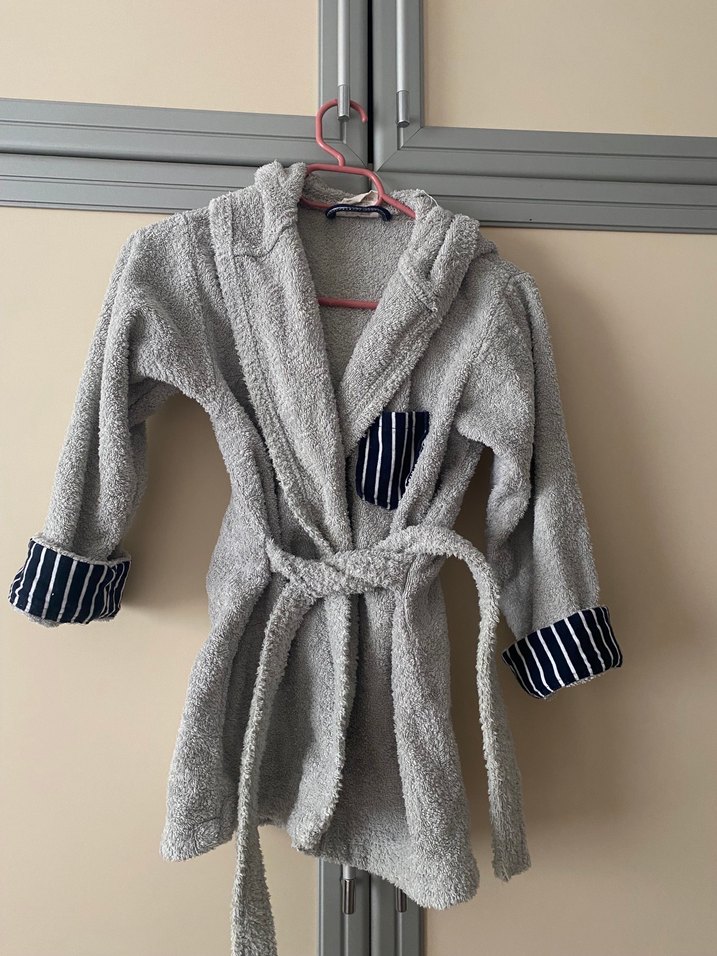Kapüşonlu Erkek Çocuk Gri Bornoz