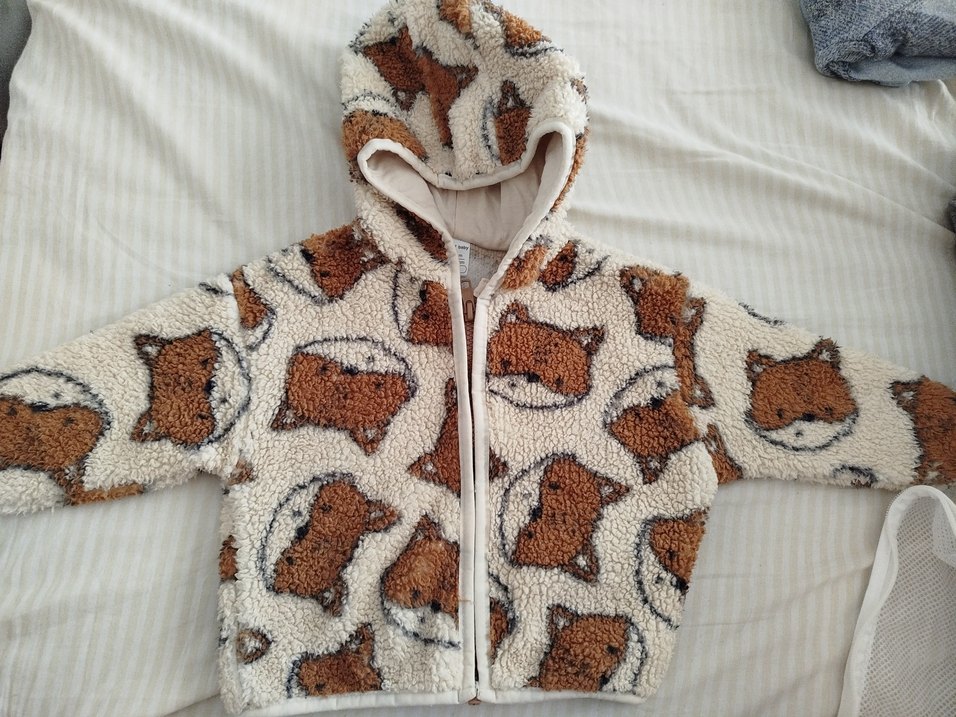 Kapüşonlu, kürklü detaylı ve yumuşak dokulu bu erkek çocuk ceketi, kahverengi ve gri baskılı desene sahiptir. Sokak stili için uygundur.
