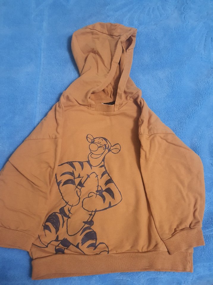 Kapüşonlu, bol kesim erkek çocuk kahverengi sweatshirt. Yumuşak dokulu, uzun kollu ve baskılı kaplan deseniyle rahat kullanım sağlar.