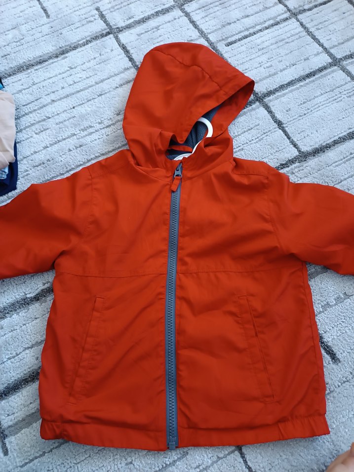 Kapüşonlu ve fermuarlı, düz kırmızı renkte, yumuşak astarlı erkek çocuk yağmurluğu. Sokak stili için uygundur. ️