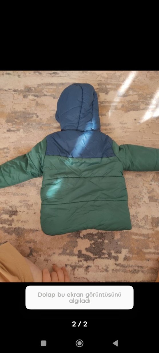Kapüşonlu, fermuarlı yumuşak ve sıcak koyu yeşil 2 renkli erkek çocuk montu.