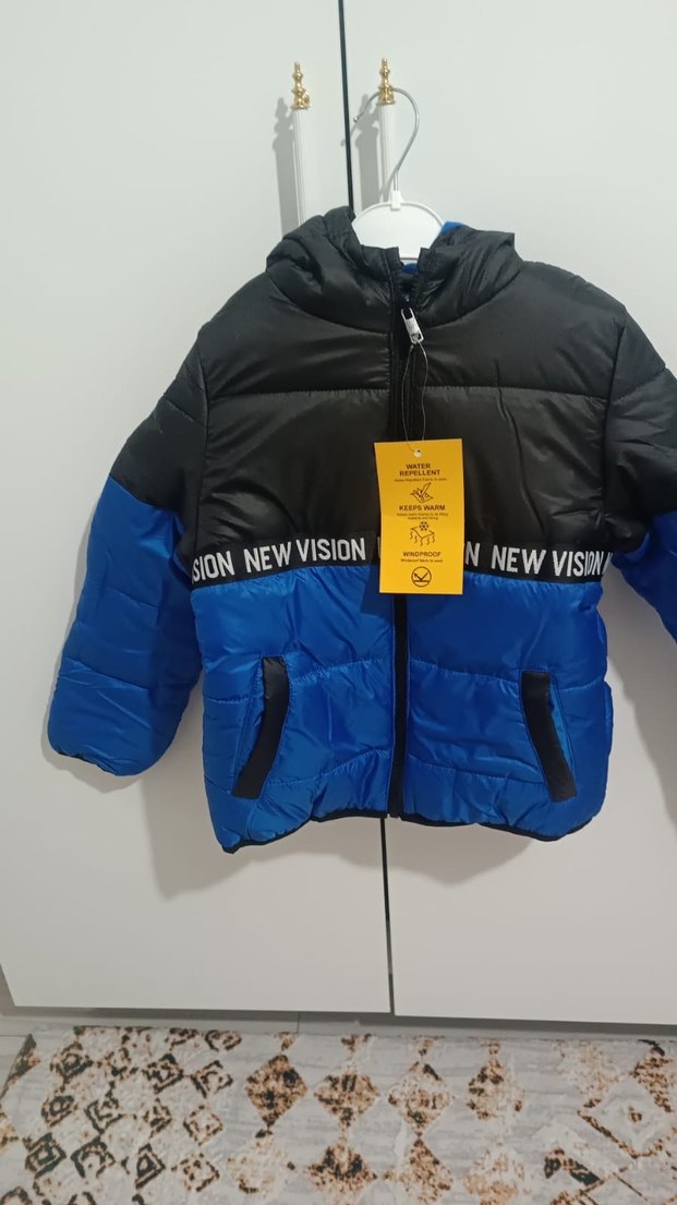 Kapüşonlu, baskılı ve fitted kesim erkek çocuk montu. Velcro kapamalı, su itici özelliğe sahip yumuşak ve sıcak kumaştan. Koyu mavi ve siyah renklerde, belinde "SION NEW VISION" yazısı var.