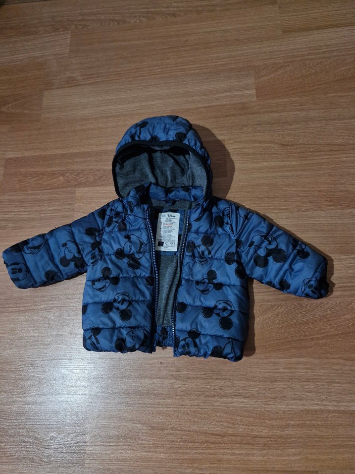 Kapüşonlu ve düğmeli, yumuşak ve sıcak kumaştan yapılmış, baskılı desenli, koyu mavi renkli, erkek çocuklar için dar kesim mont.