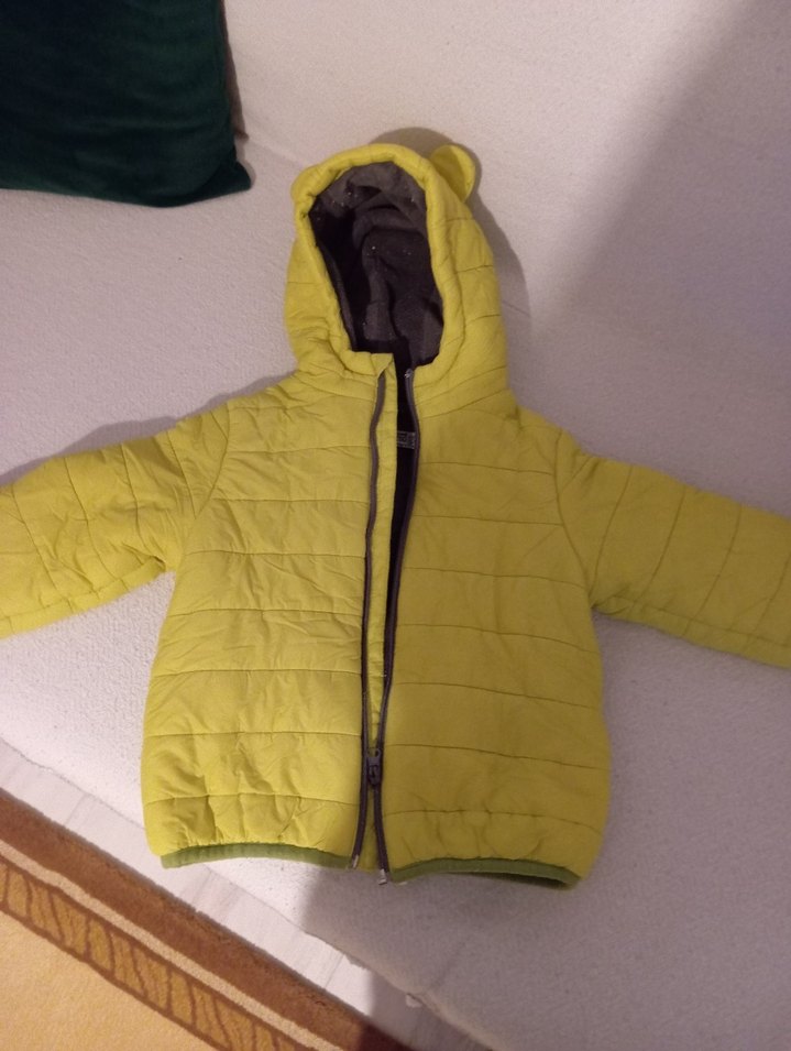 Kapüşonlu ve fermuarlı, yumuşak ve sıcak kumaştan yapılmış,dar kesim erkek çocuk montu. 2/4 yaş giyebilir. fıstık yeşili tonunda.