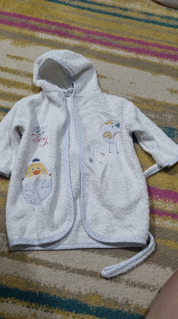 Kapüşonlu Erkek Çocuk Nakışlı Bornoz (1-2 yaş için uygundur)