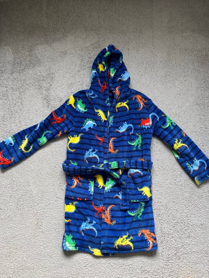 Kapüşonlu Erkek Çocuk Renkli Dinazor Desenli sabahlık