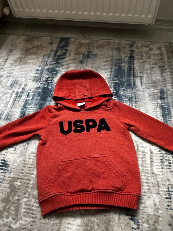 Kapüşonlu ve uzun kollu erkek çocuk sweatshirtü. Yumuşak ve sıcak kumaş iyi durumda