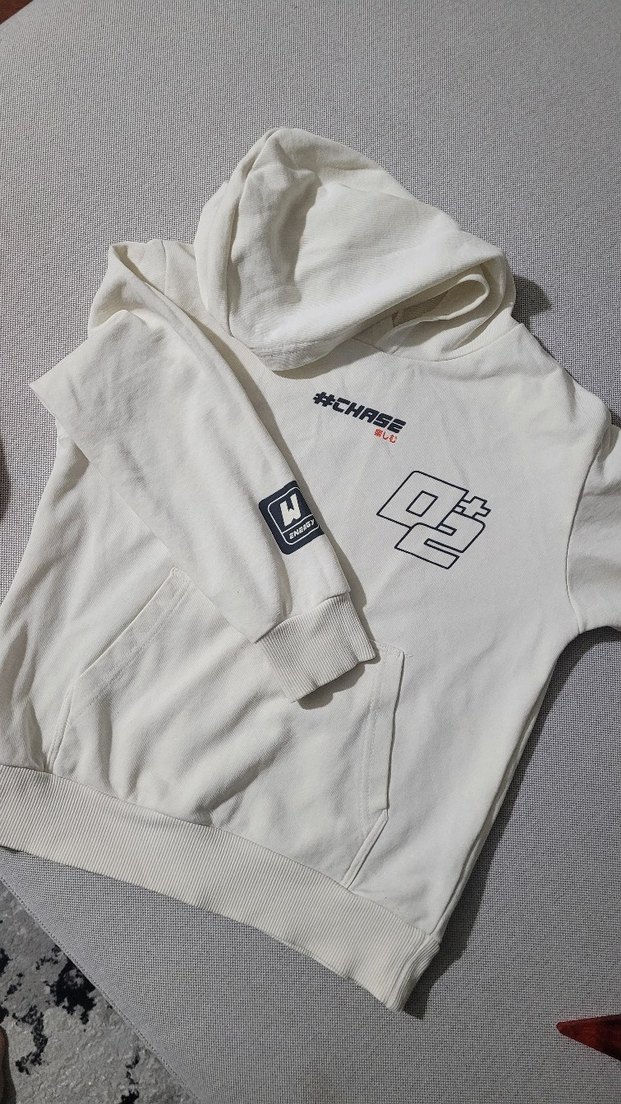 LCW , 8- 9 YAŞ, Kapüşonlu, uzun kollu beyaz erkek çocuk sweatshirt. Yumuşak ve sıcak kumaştan, baskılı desenli ve bol kesim. #CHAS yazısı bulunur. Trend sokak stili için ideal. Sayılı kullanıldı, tertemiz