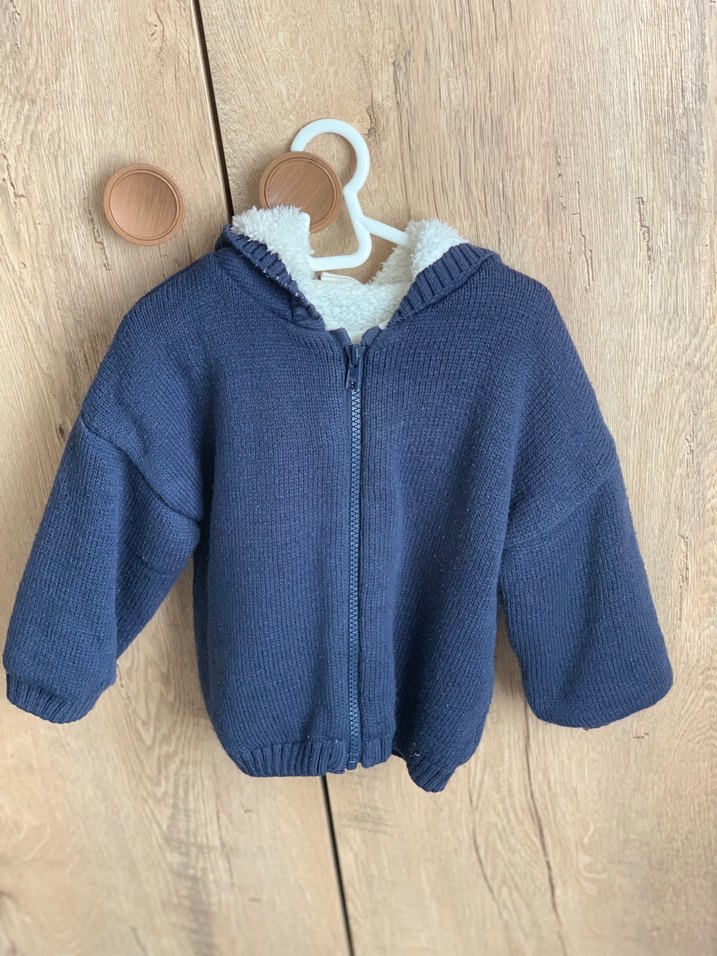 Kapüşonlu ve uzun kollu, bol kesim erkek çocuk triko hırka. Örgü yapılı ve içi yumuşak, sıcak kumaşla kaplanmış sade mavi renkte. Hiçbir sorunu defosu yoktur küçük geldiği için satıyorum gayet kalın ve sıcak tutuyor