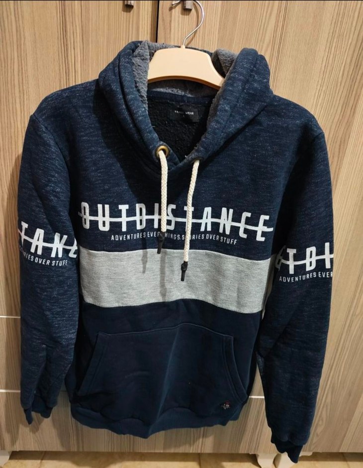 Kapüşonlu Erkek Sweatshirt Gri-Mavi