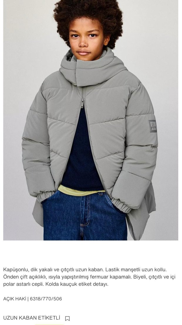 Kapüşonlu, dik yakalı ve çıtçıtlı uzun mont manşetli, biyeli ve kutu cepli. Kolda kauçuk etiket detayı bulunur. 7 8 yaş 8 9 yaş 9 10 yaş 11 12 yaş 13 14 yaş mevcuttur