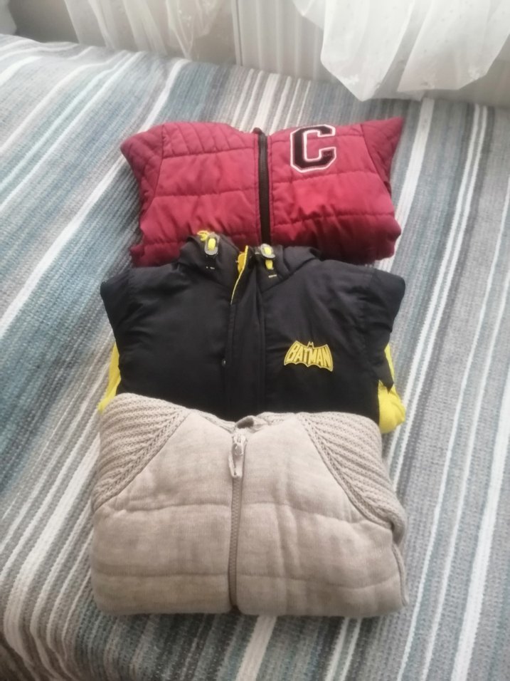 Kapüşonlu ve fermuarlı, fitted kesim erkek çocuk ceketi. Koyu gri renkte, desen içermeyen yumuşak ve sıcak kumaştan üretilmiştir. Batman logosu bulunur. bir tanesi ortadaki 3-4 yaş diğer iki tanesi 4-5 yaş....... 3 adet satılmaktadır ayıramıyorum
