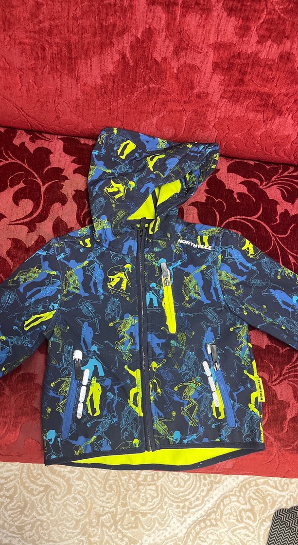 Kapüşonlu, fermuarlı ve çok cepli erkek çocuk ceketi. Sokak tarzı için çok renkli baskılı, yumuşak ve sıcak kumaştan yapılmıştır.