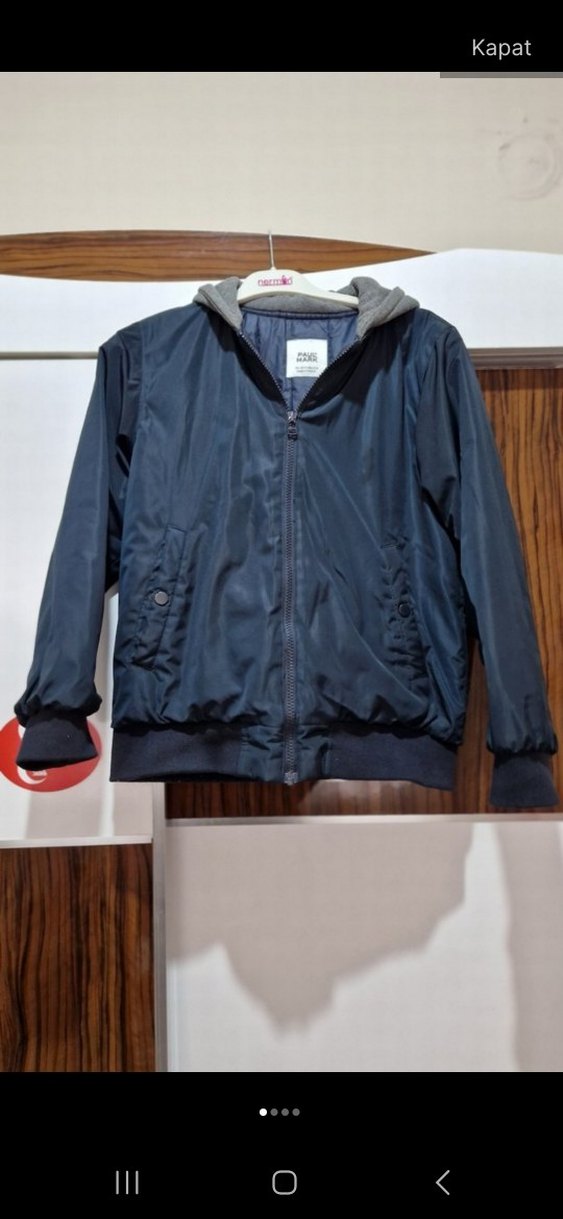 Kapüşonlu ve fermuarlı erkek çocuk ceketi, rahat kesim ve yumuşak, sıcak kumaştan üretilmiştir. Koyu mavi renk ve baskılı deseniyle trend bir görünüm sunar.