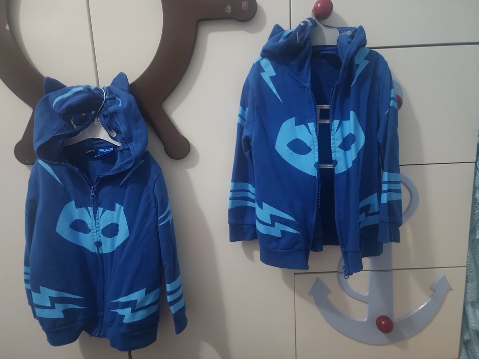 Kapüşonlu, fermuarlı ve baskılı desenli, koyu mavi renkli, ince kesim erkek çocuk sweatshirtü. Yumuşak ve sıcak kumaştan üretilmiştir. her görsel 300 tl ayrı ayrı satışta