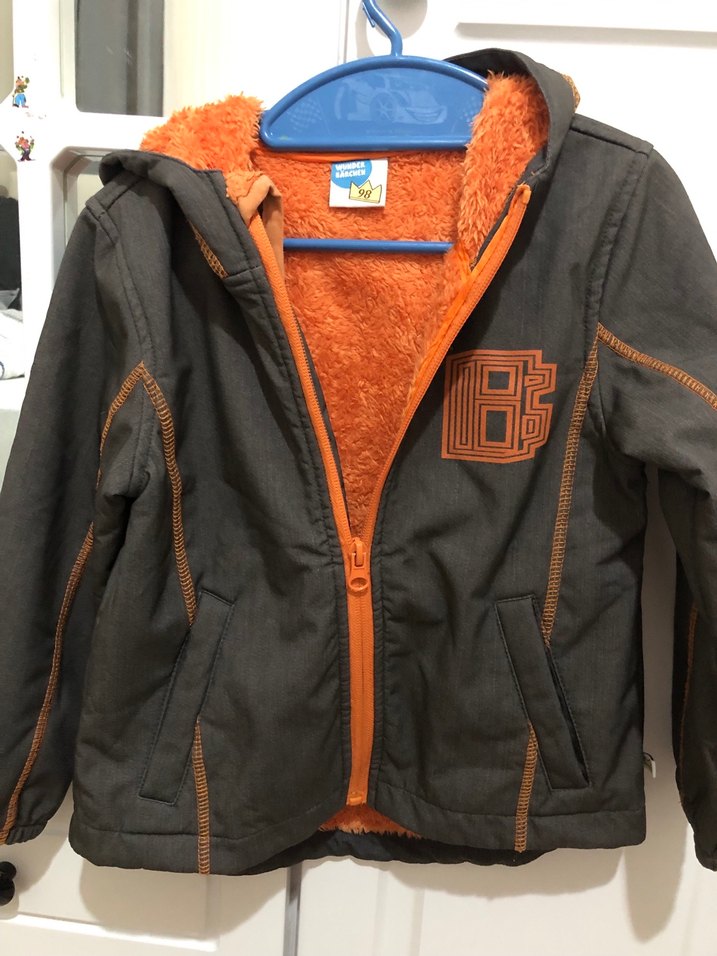 Haki renkkapüşonlu ve fermuarlı erkek çocuk montu. Baskılı deseni ve yumuşak, sıcak tutan iç kısmı rahatlık sağlar. Trendy casual tarz için uygun.