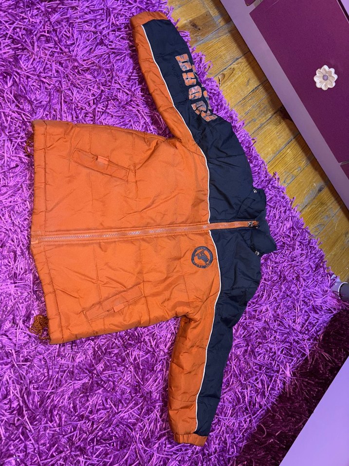 Kapüşonlu ve fermuarlı, yumuşak ve sıcak kumaştan yapılmış, fitted kesim erkek çocuk mont. Koyu kahverengi ve siyah tie-dye deseniyle trend bir görünüm sunar.