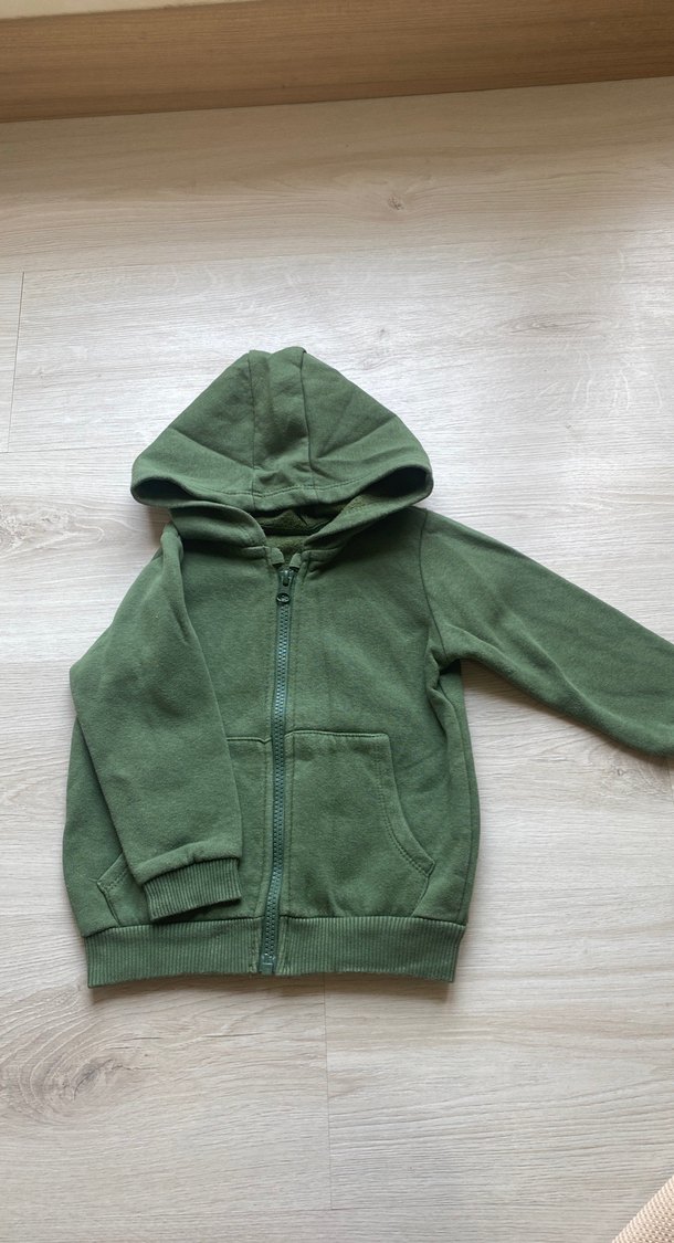Kapüşonlu, ön fermuarlı, yeşil renkli, uzun kollu, düz tasarımlı, yumuşak ve sıcak kumaştan erkek çocuk sweatshirtü.