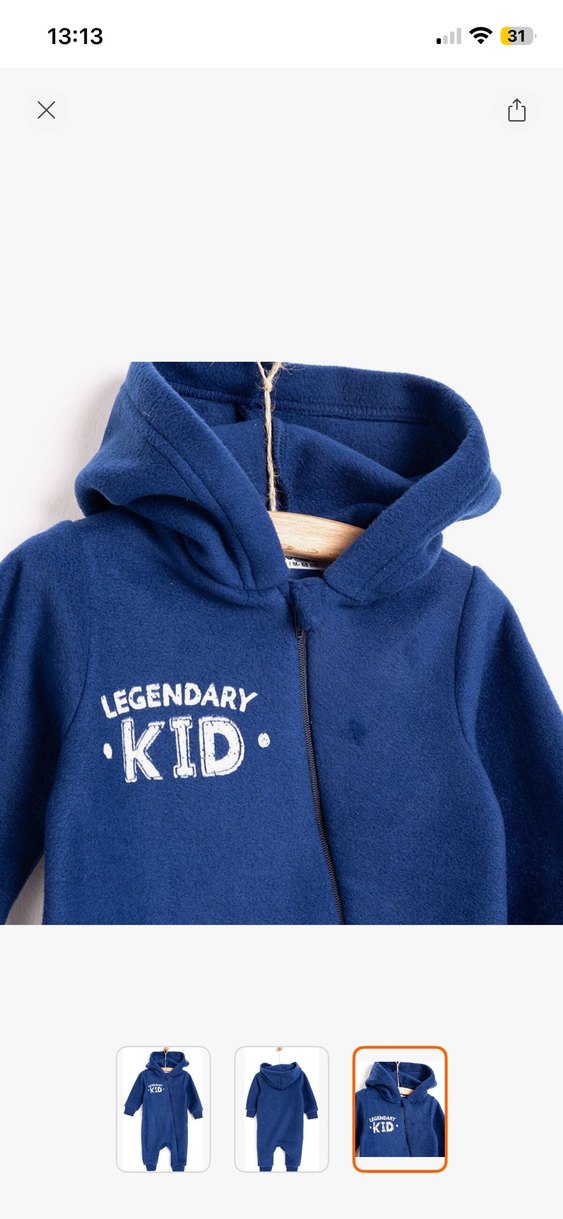 Kapüşonlu, fermuarlı ve uzun kollu erkek çocuk polar tulum . koyu mavi renk ve "LEGENDARY KID" baskılı. Yumuşak ve sıcak kumaştan üretilmiştir. Etikette 6 ay yazıyor fakat kalıbı küçük olduğu 3-4 ay için uygun