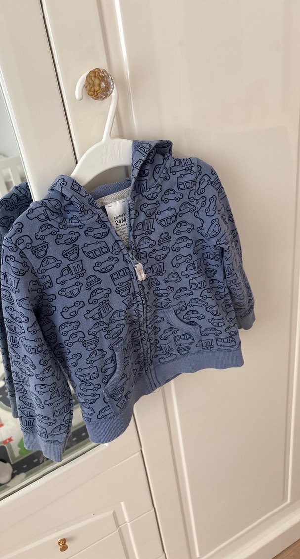 Gri renkli, kapüşonlu ve fermuarlı erkek çocuk sweatshirtü. Uzun kollu, baskılı desenli ve yumuşak, sıcak tutan kumaştan üretilmiştir.