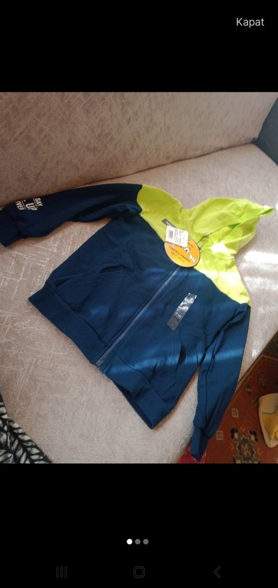 Bu erkek çocuk sweatshirtü, uzun kollu, kapüşonlu ve fermuarlı dar kesime sahiptir. Mavi ve neon yeşil renklerde renkli baskıya sahip, yumuşak ve sıcak kumaştan uretilmistir