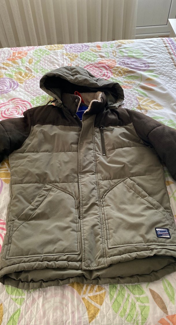 Fermuarlı ve kapüşonlu, notched lapel yakalı erkek montudur. Yumuşak ve sıcak kumaştan, kahverengi ve gri tonlarında, trend sokak stili için uygundur. Hiç bir yerinde bir problem yok #jackjones marka