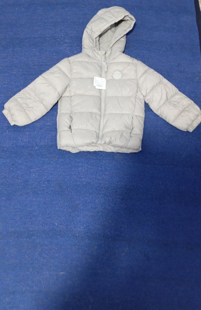 Kapüşonlu, fermuarlı gri erkek çocuk mont