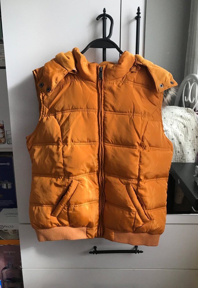 Kapüşonlu ve fermuarlı kadın yelek. Yüksek yakalı, belden oturan, yumuşak ve sıcak kumaştan üretilmiştir. Önden iki cep, içten bir cebi vardır. Yedek düğmeleri var. 38 beden çok temizdir giyilmedi. Kapüşonu fermuarlıdır çıkabilir. ürünlerimde iade yoktur #kadınyelek #kadıngiyim #şişmeyelek