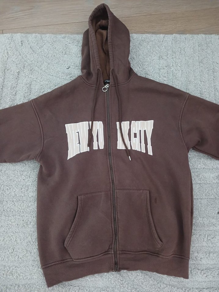 Kapüşonlu Fermuarlı Kahverengi Sweatshirt