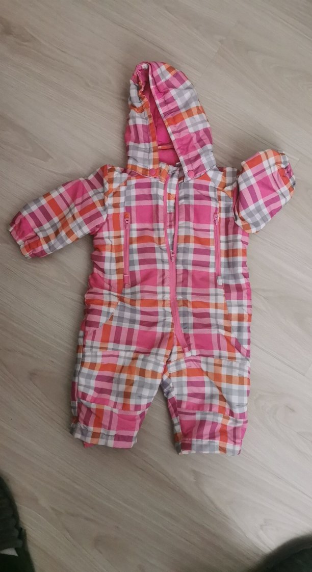 Canlı pembe bağlama desenli, kapüşonlu ve fermuarlı kız bebek kar tulumu, tam koruma sağlar. ❄️