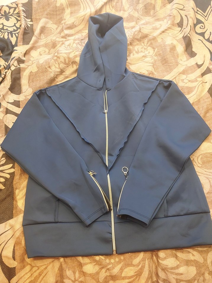 Kapüşonlu Fermuarlı Mavi Kadın Ceket