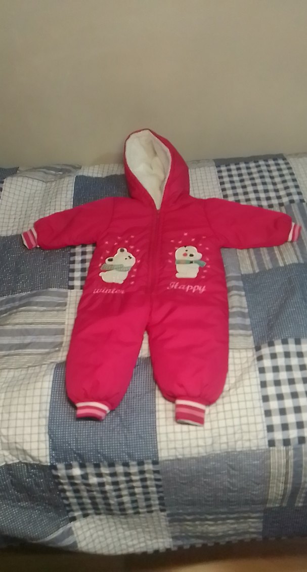 Canlı pembe renkte, kapüşonlu ve fermuarlı bebek tulumu. Sıfır ürün. 6-9 Ay