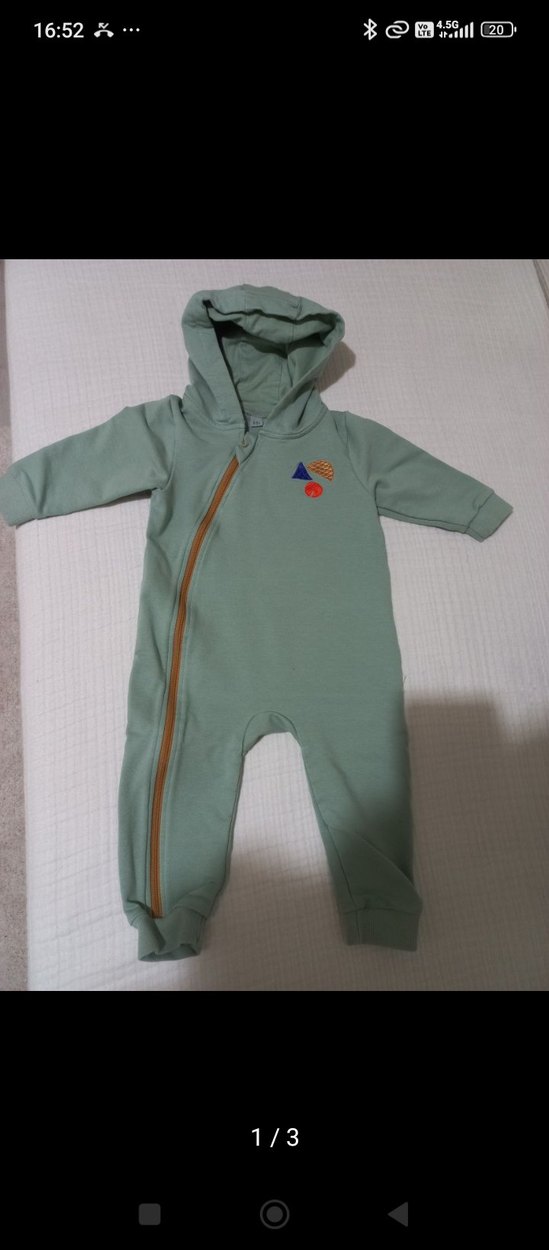 Kapüşonlu Fermuarlı Yeşil Bebek Tulum