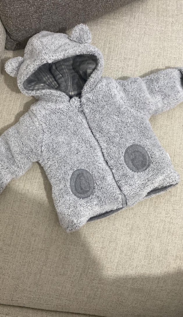 Kapüşonlu Gri Bebek Kürklü Mont