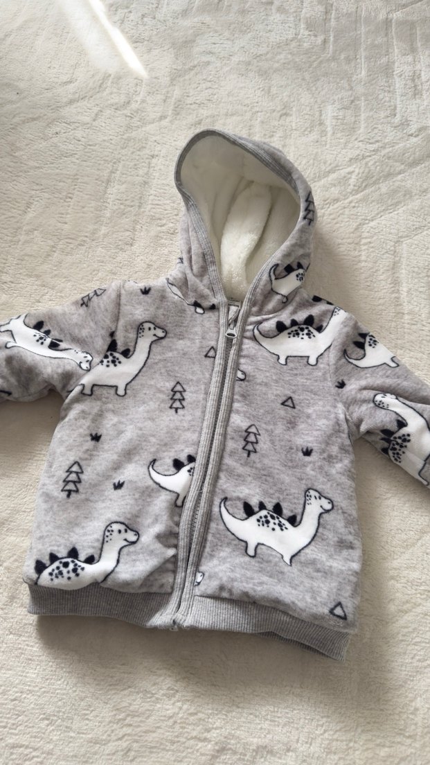Unisex bir model Dinazor desenli çok kalın yumuşacık bir ceket hiç kullanılmadı aldım etiketi çıkartıp makinaya attım çocuğuma küçük gelince kaldı öyle