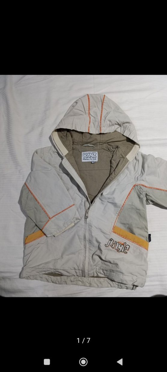 Gri renkli, kapüşonlu ve fermuarlı erkek çocuk ceketi, bol kesimdir. Yumuşak ve sıcak kumaştan yapılmış, baskılı desenler ve Kanz marka detayları bulunur.