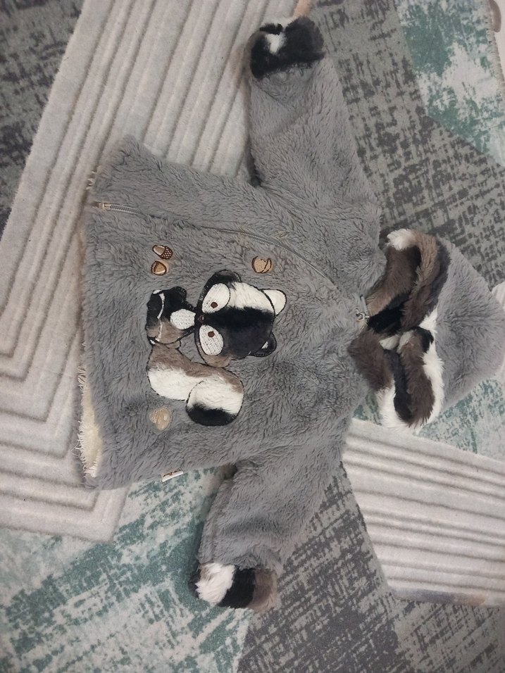 Kapüşonlu, bol kesim erkek çocuk kabanı, yumuşak ve sıcak kumaştan üretilmiş, kürk detaylıdır. Ön kısmında nakışlı desen bulunur, günlük sokak tarzı için uygundur.