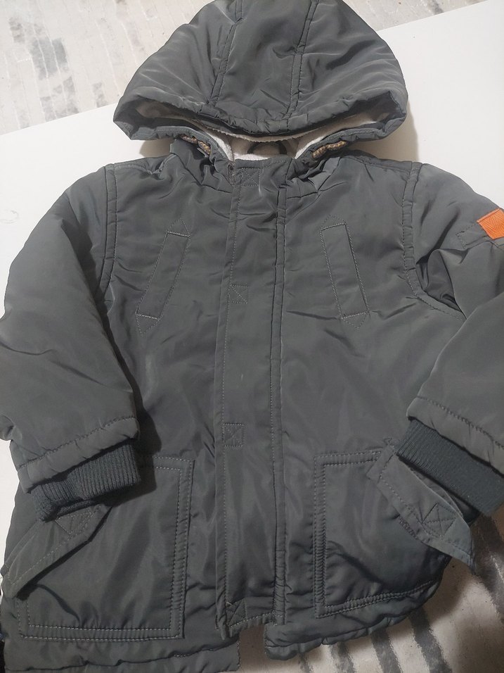 Kapüşonlu, fermuarlı, gri renk ve düz desenli erkek çocuk montu, yumuşak ve sıcak kumaştan üretilmiştir. Sokak tarzı için uygun