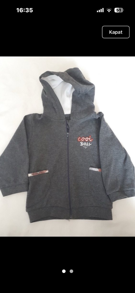 Bu kapüşonlu, uzun kollu ve fermuarlı gri erkek çocuk sweatshirtü, yumuşak ve sıcak kumaştan üretilmiştir. "Baby" yazılı baskıya sahiptir. Sokak stili için uygundur.