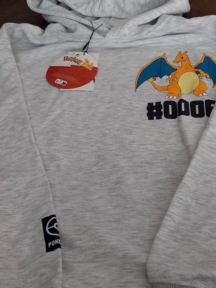 Yumuşak kumaştan, kapüşonlu ve baskılı gri sweatshirt. Uzun kollu, bol kesimdir