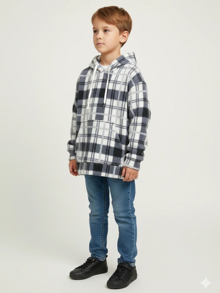 Kapüşonlu, uzun kollu ve bol kesim erkek çocuk sweatshirtü, yumuşak ve sıcak kumaştan üretilmiştir. Gri batik desenli, rahat ve şık bir görünüm sunar.