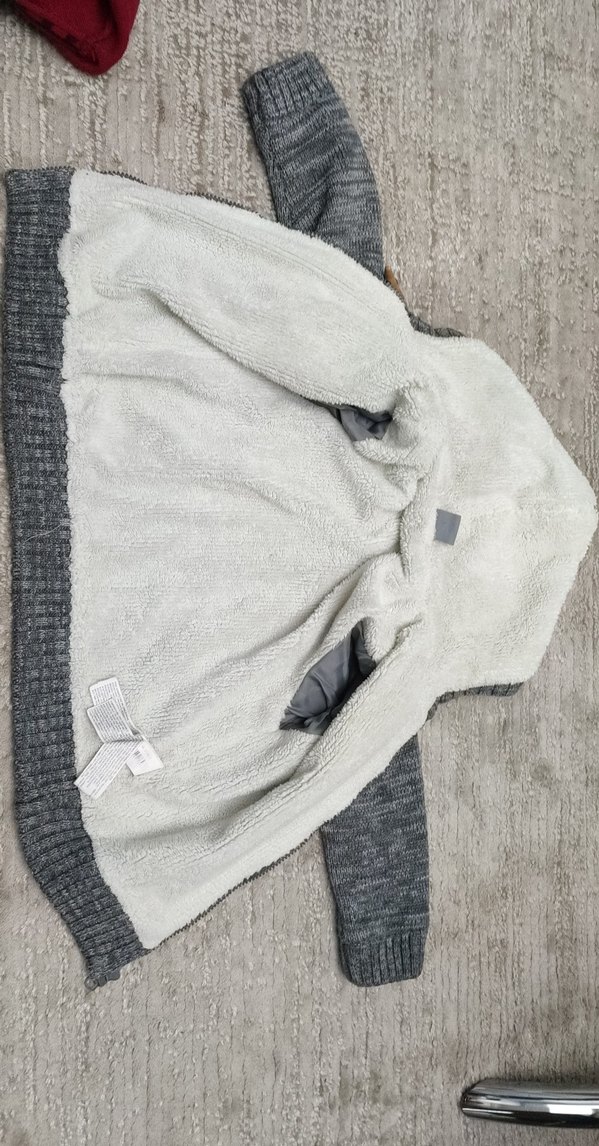 Kapüşonlu ve uzun kollu, gri renkli, yumuşak dokulu triko erkek çocuk sweatshirtidir. Düz ve sokak tarzına uygun bir modeldir.
