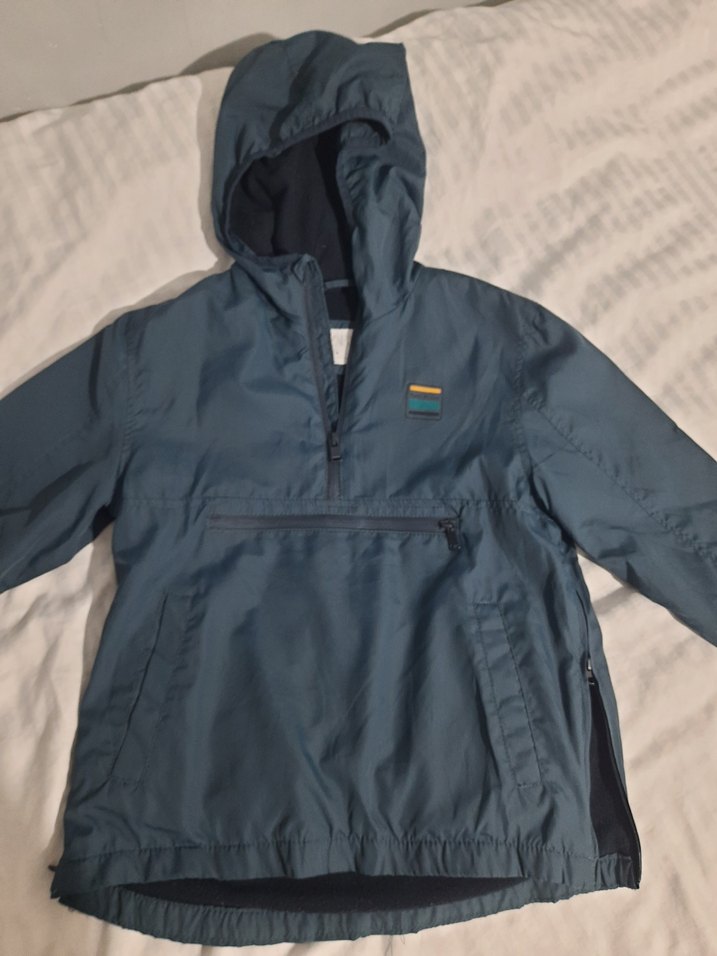 Kapüşonlu ve bol kesimli gri erkek çocuk yağmurluğu. Fermuarlı ön ve yan cepleri vardır, yumuşak ve sıcak kumaştan üretilmiştir. içi Polatlı tarz bir sweatshirt