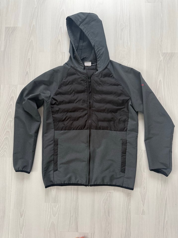 Kapüşonlu ve fermuarlı, düz gri renkte, rahat ve yumuşak dokulu erkek erkek ceketi. Sokak stiline uygun, bol kesim.Manchester united arması vardı göğsünde çıkardım..