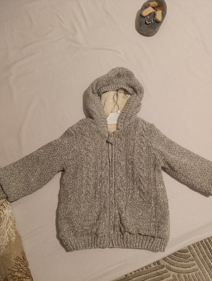 Kapüşonlu Gri Örgü Erkek Çocuk Kazak