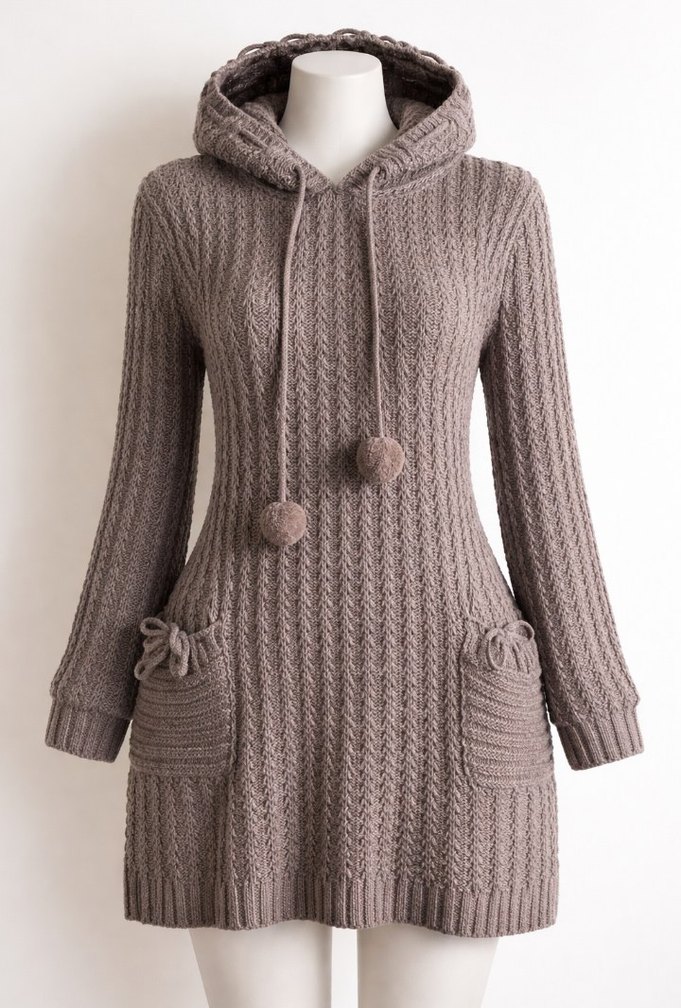 Kapüşonlu Gri Örgü Triko Midi Kazak
