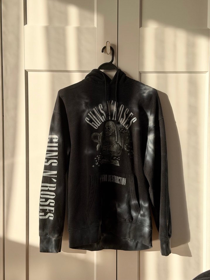 Kapüşonlu, uzun kollu ve bol kesim sweatshirt. Fermuarlı önü ve Guns N' Roses baskısı ile sokak stiline uygun. Defosuz.